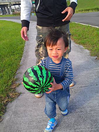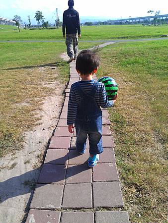 走到比較後面就沒水了所以就把球拿出來給小屁孩玩~~
