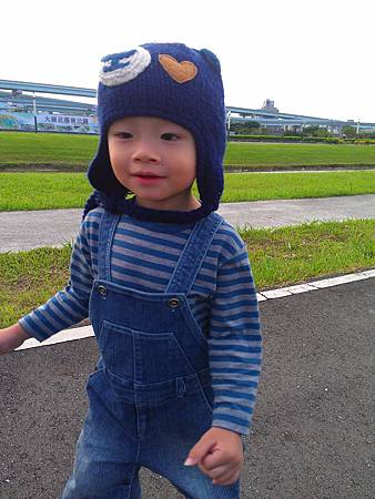 所以外出時順便帶了帽子出來給小屁孩戴!