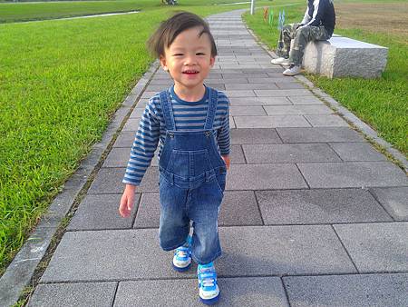 記得他才剛學會走路時我們要抱他他還會不高興一定要自己走勒,