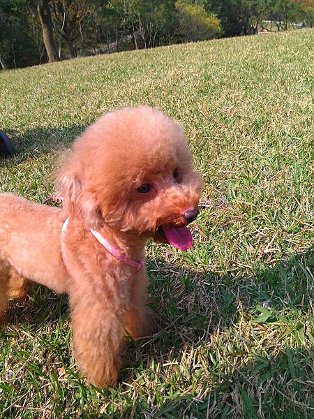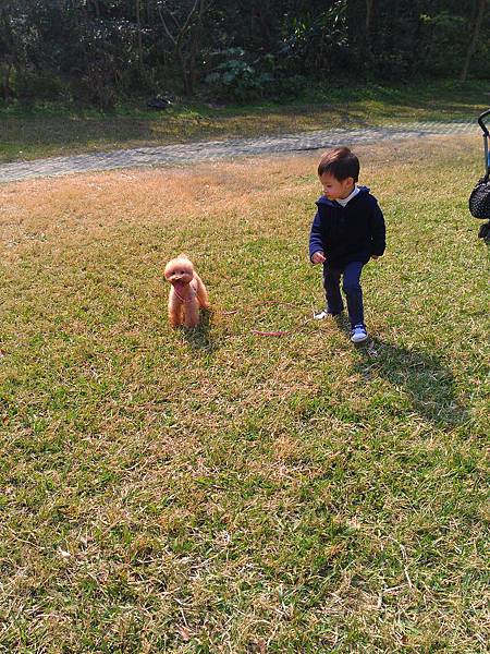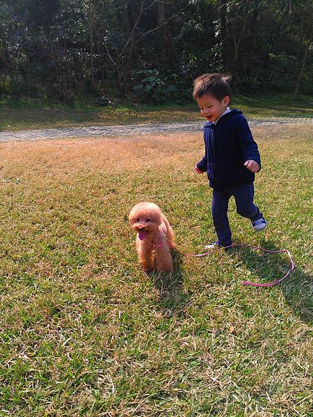 小屁孩很喜歡跟球球一起在草地上跑~
