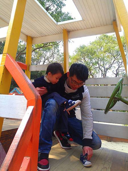 老公正在幫小屁孩穿鞋中~~