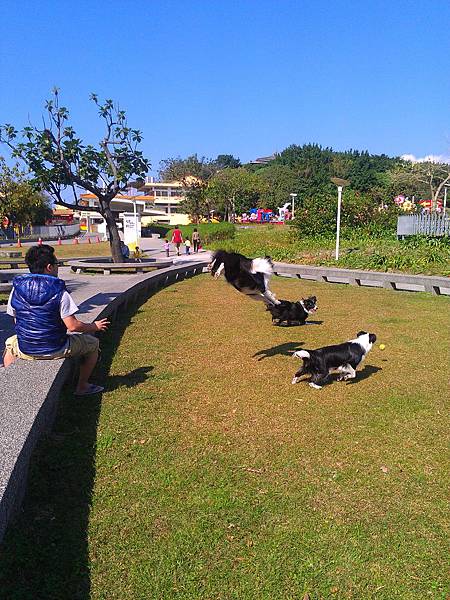 要離開時剛好看到有三隻邊境牧羊犬在玩球,