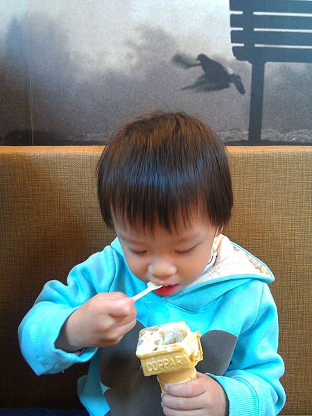 小屁孩只要吃冰就眉開眼笑的,