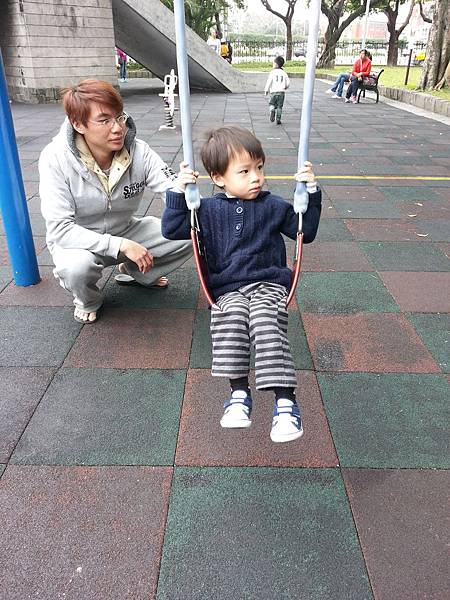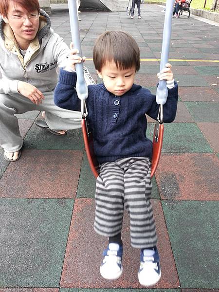 玩盪鞦千也是沒有什麼表情..