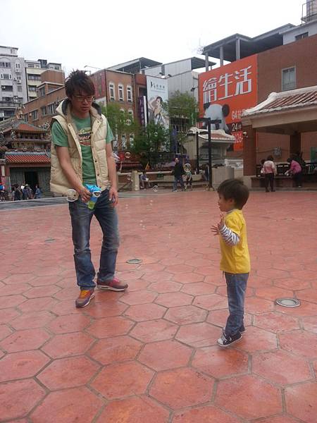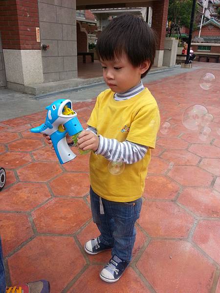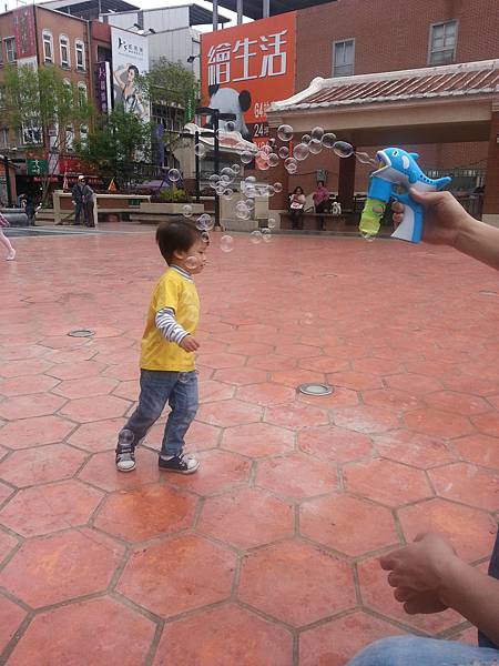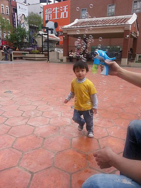 小屁孩在這裡玩泡泡機玩的很高興哦