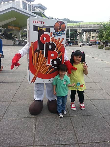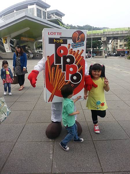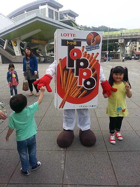 就是跟這個餅乾玩偶拍照就可以得到一小包的餅乾...