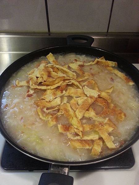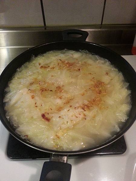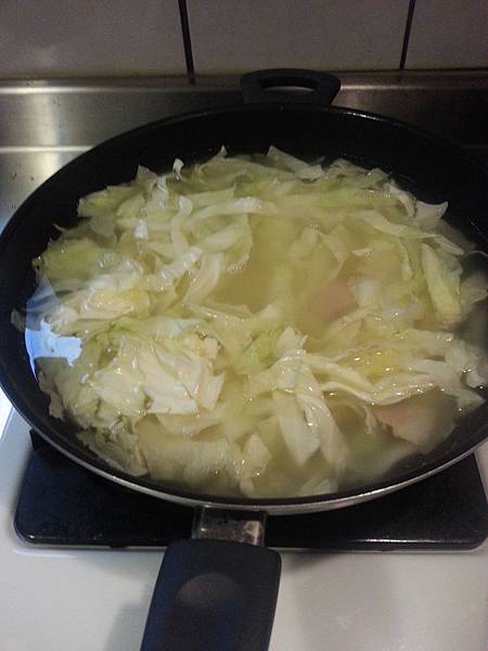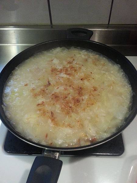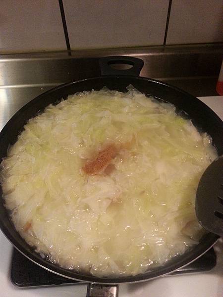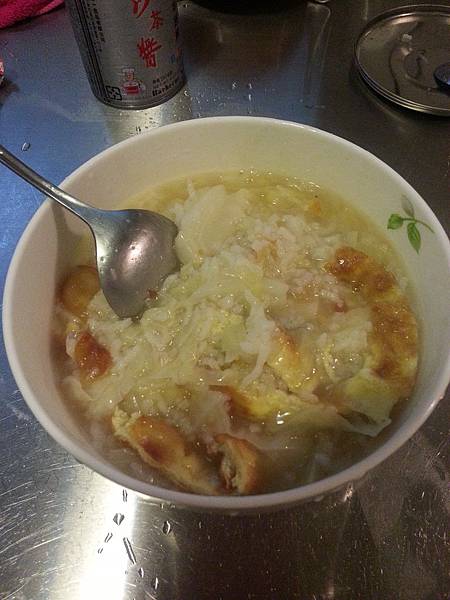 昨天中午在家自己開火煮高麗菜粥,