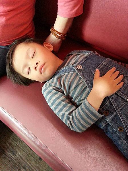 所以我們就把小屁孩放在沙發上面給他睡覺,