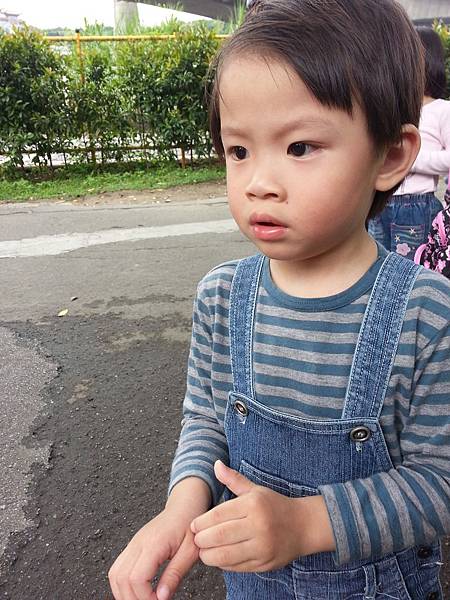 像那天排小火車時小屁孩就乖乖的站在我旁邊跟我一起等,