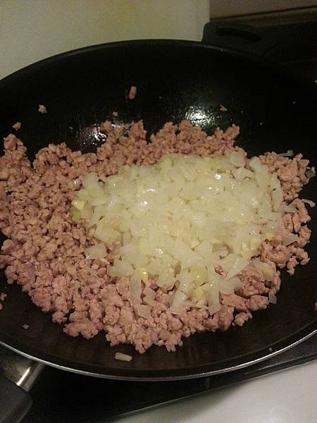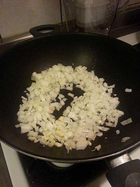 再放入洋蔥末炒至透明狀