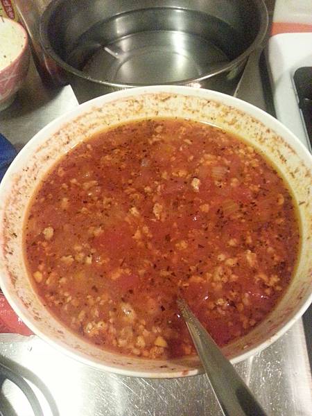 這是煮好的義大利肉醬