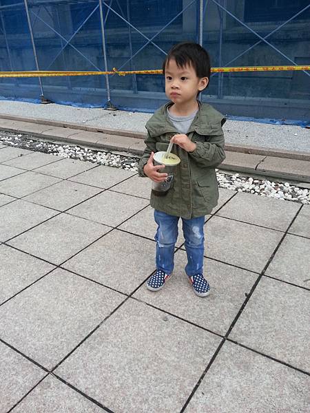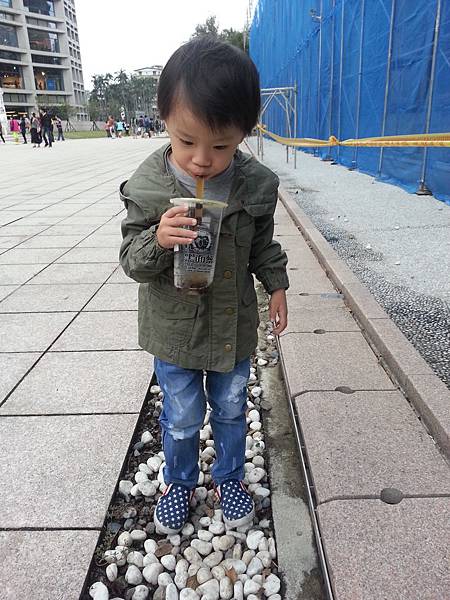 小屁孩手上拿的是在黑面菜楊桃汁買的蜂蜜紅茶+珍珠,