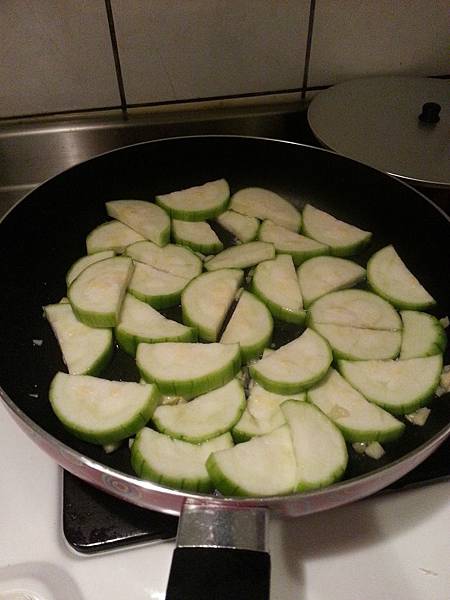 然後再爆香蒜末~接著放切好的絲瓜,然後再加點水