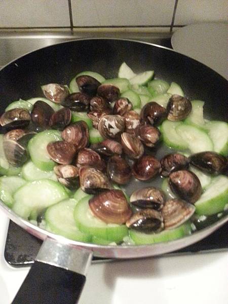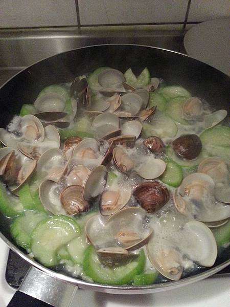 蛤蜊絲瓜材料有~蛤蜊、絲瓜、蒜末