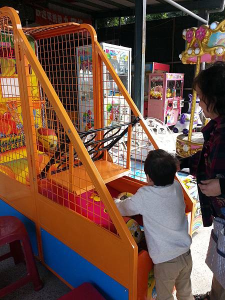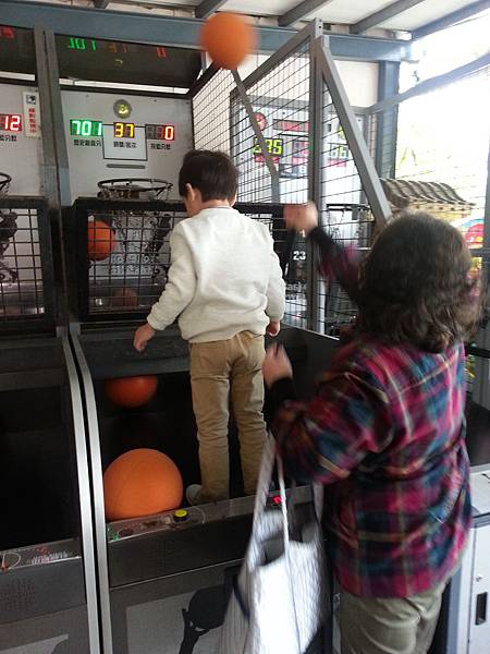 一進來沒多久就被小屁孩看到他最愛的籃球機