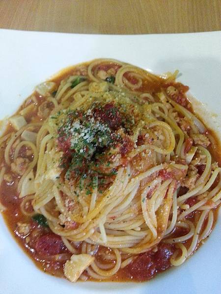 我是點蕃茄義大利肉醬麵~130元加麵再加20元!