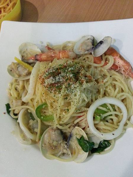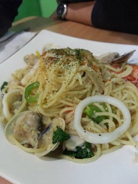 老公點的香蒜總匯海鮮義大利麵~160元!