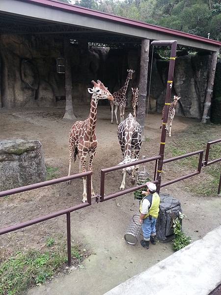 而且剛好看到工作人員在餵新鮮的草給長頸鹿們吃~