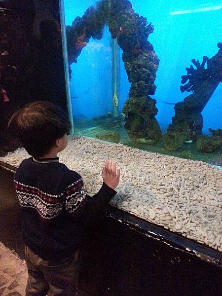 每次去逛夜市只要看而有魚就一定要讓他看一下,