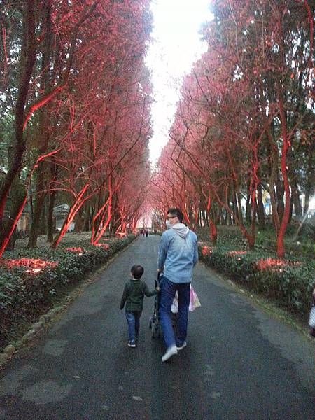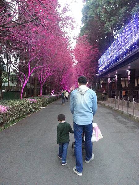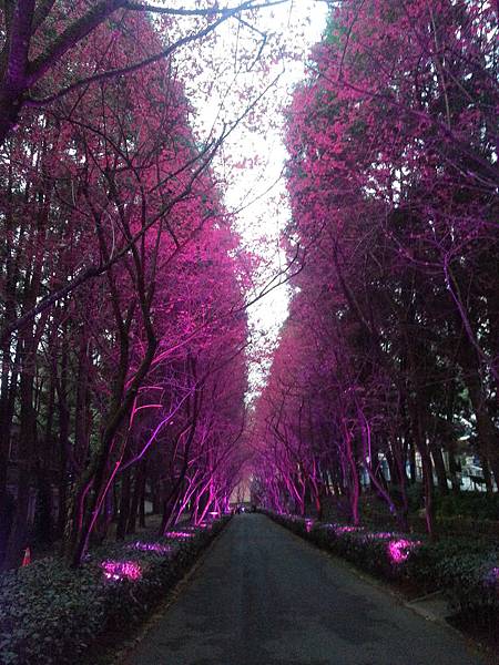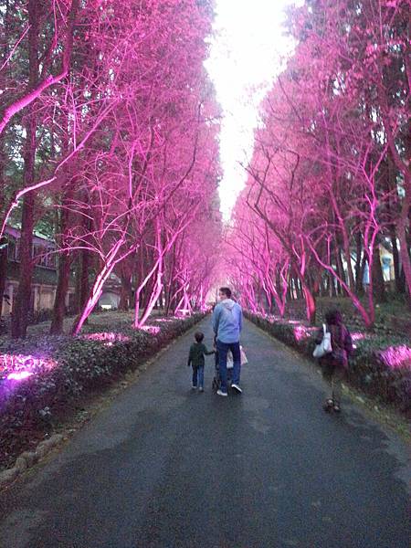 到了快晚上時櫻花樹上的燈飾都開了起來~