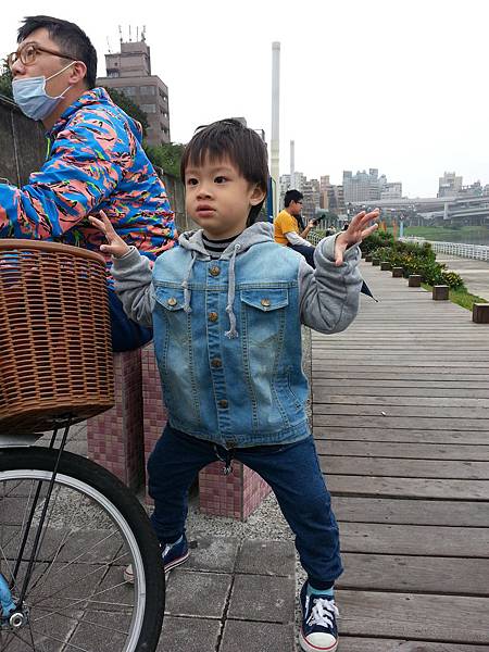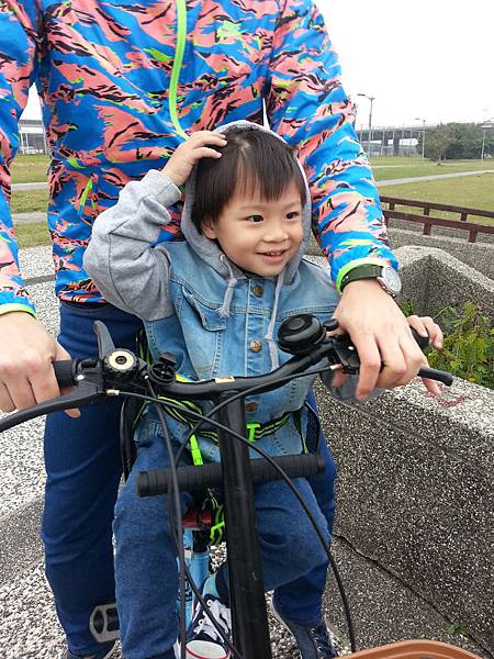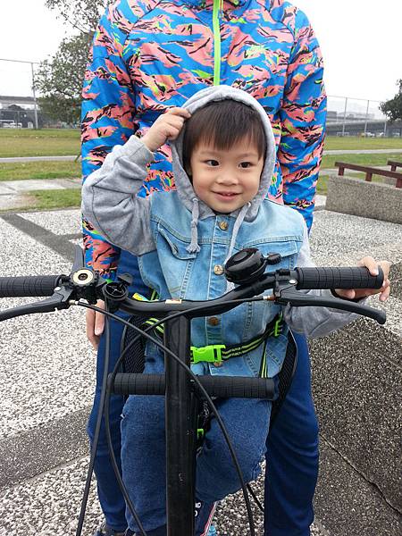老公說這種小孩坐在前面的親子車他比較不好騎,
