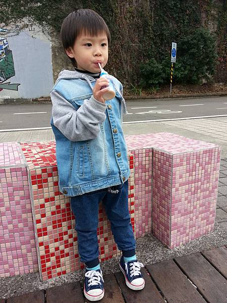 小屁孩很悠閒的喝著多多