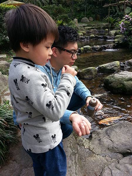 平常很愛餵魚的他竟然餵了一下子就說不餵了