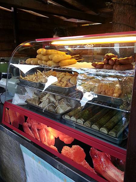 我們買了一顆肉粽口一顆羊奶口味的饅頭和一杯紅茶~