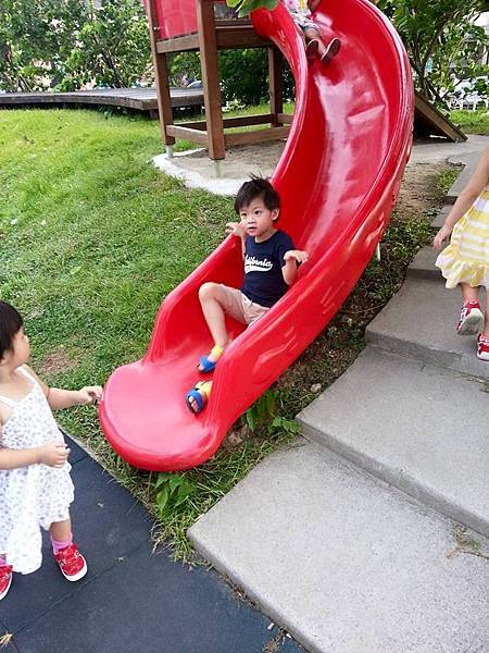 但是小屁孩光玩溜滑梯就玩得很開心了!