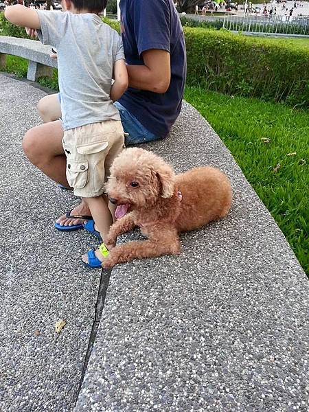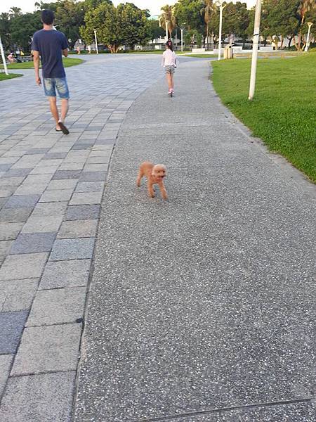 就把球球的牽繩解開然後讓她自由走來走去的!