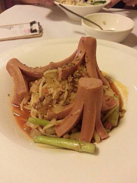 這是鄉村肉醬波隆地香腸義大利麵~340元(這裡不收服務費)