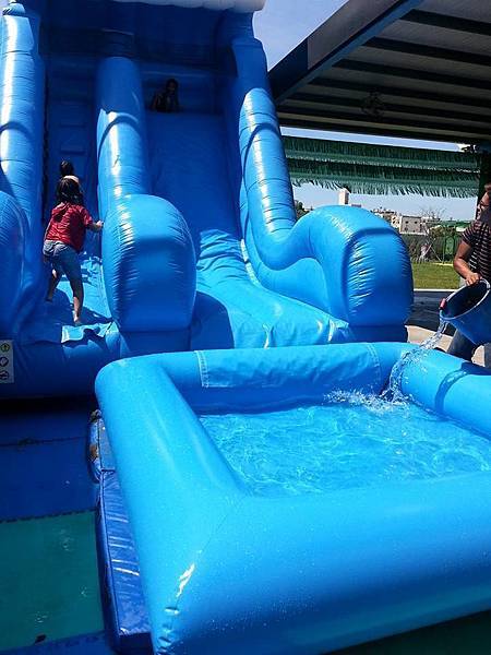差不多下午一點多的時候工作人員就會把這個大型的充氣遊戲墊灌飽氣,